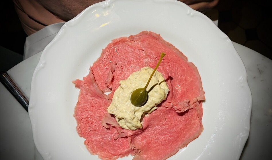 Menyn kombinerar franska bistroklassiker med italienska trattoriarätter, där fokus ligger på tradition, generositet och igenkännbara smaker. Här samsas charkuterier, pasta, risotto och rustika huvudrätter som steak au poivre, osso buco och stekt gös. Dessertutbudet följer samma linje med klassiska avslut som pain perdu, chokladmousse och ostbricka.