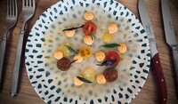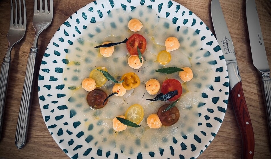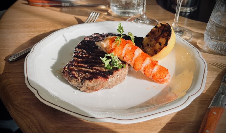 Menyn är uppdelad i tematiska delar som Raw & Bubbles, Dogs & Rolls, From the Grill och Garden Creations. På listan finns scallop crudo med huacatay, Crab Donut med jalapeño och äppelrökt cheddar samt Clams Casino med forellrom från Älvdalen. Från grillen serveras bland annat Surf & Turf, tomahawk steak och panerad kalvkotlett med fermenterat citronsmör och kapris. Avslutet rör sig mellan donuts med marshmallow och Biscoffglass till en mer lekfull sundae-bar.