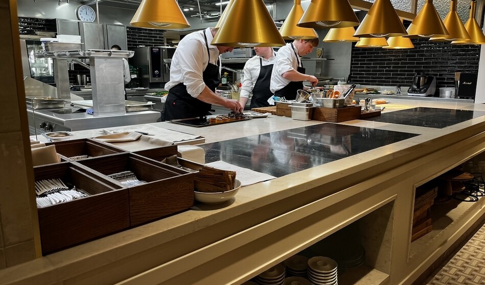 I markplan av Thon Hotel Vasa öppnar rummet upp sig med en generös bardisk och ett sorl som känns mer kontinentalt än stressad citypuls. Bakom menyn står Jonas Höglander, som låter det bekanta vara utgångspunkt – men aldrig slutstation. Här får klassiska rätter nytt liv genom säsongens råvaror och små, precisa förskjutningar i smak. Ambitionen är tydlig – att skapa en plats man återvänder till. Inte bara för maten, utan för känslan av att alltid kunna slinka in, slå sig ner och känna sig hemma, oavsett tid på dygnet.