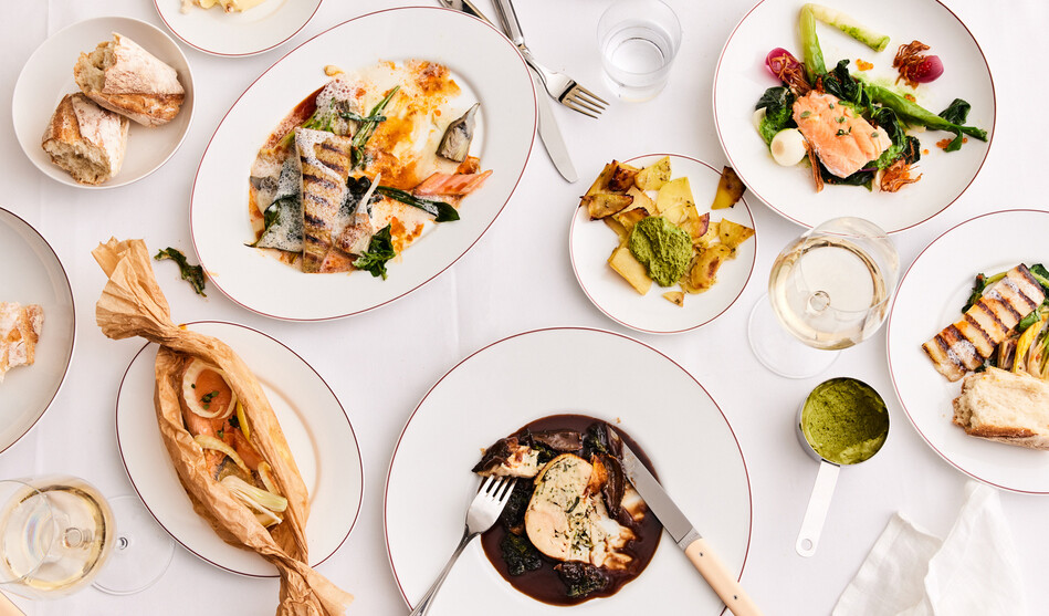 Typiska maträtter: Regnbåge “papillote” med spenat, färsklök och regnbågsrom, Steak frites med Café de Paris-smör + pommes, Brässerad lammbog med ratatouille, rosmarin och citronsmör + rostad potatis, Färserad kyckling med murklor, karamelliserad potatis och nässlor, Piggvar tillagad på ben med kronärtskocka, sobrasada och pil-pil