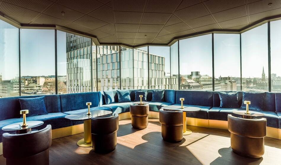 I baren blandas egna moderna drinkar och tidlösa klassiker - allt med en panoramautsikt över Stockholm. Här skapas kreativa drinkarna med så klart dom bästa råvarorna. En lättare barmeny med charkuterier, ostar och andra delikatesser kompletterar upplevelsen.