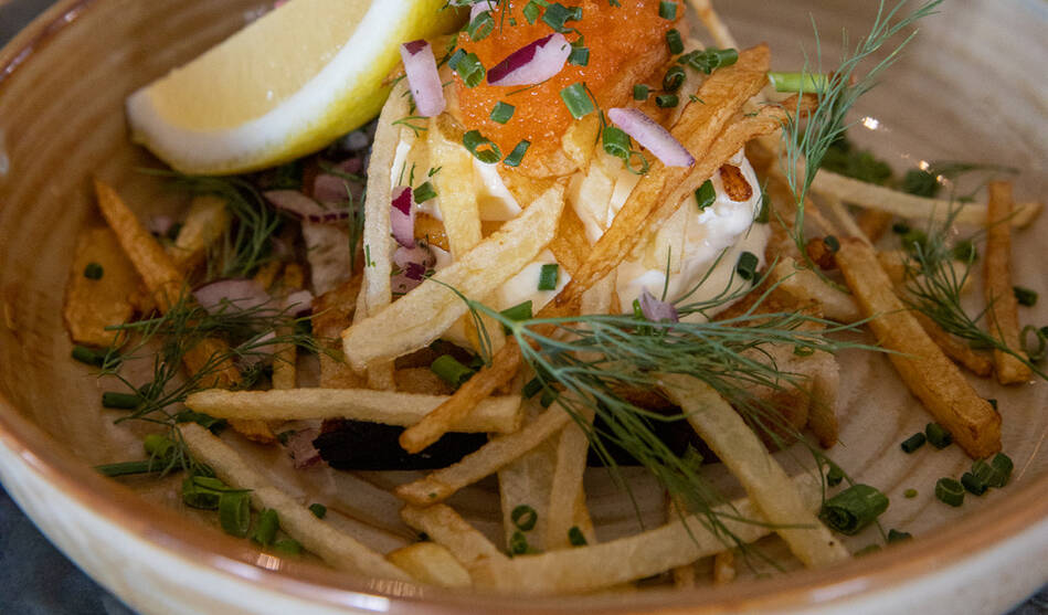 Typiska maträtter: Grillad oxfilé med ugnsrostad rosmarinmarinerad färskpotatis, karljohansvampsås, sparris & rödvinssås. Grillad svensk entrecoté med pecorino smör, ruccola, grillad paprika, rödlök och rödvinssås serveras med pommes & bearnaisesås. Högrevsburgare, Cheddarost, karamelliserad lök, tomat, krispsallad, briochebröd, pommes & sriracha mayo