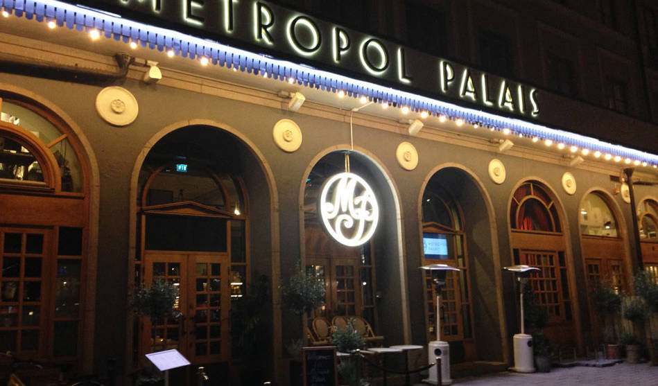 Namnet låter som hämtat från svunna tidevarv, och mycket riktigt är lokalen anrik: Här öppnade Stockholms tjusigaste biograf 1927, inredd i tjugotalsklassicistisk stil med kolonner, väggmålningar, stuckatur och balustrader. Efter att senare ha fungerat som konferenslokal och festvåning slog palatset nyligen upp sina ekportar för nysatsningen med brasseri och cocktailbar i romantiskt finfransk atmosfär. Det är takkronor, blanka träpaneler, vita linnedukar och snittblommor för hela slanten, och givetvis också ostron, foie gras, bouillabaisse, coq au vin, smakrika ostar och sist men inte minst en äkta dessertvagn.