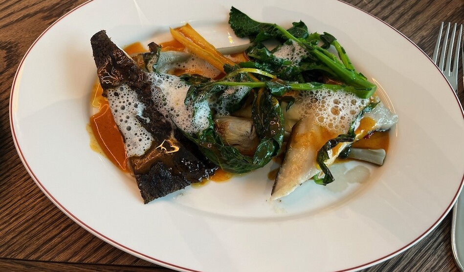 Typiska maträtter: Regnbåge “papillote” med spenat, färsklök och regnbågsrom, Steak frites med Café de Paris-smör + pommes, Brässerad lammbog med ratatouille, rosmarin och citronsmör + rostad potatis, Färserad kyckling med murklor, karamelliserad potatis och nässlor, Piggvar tillagad på ben med kronärtskocka, sobrasada och pil-pil