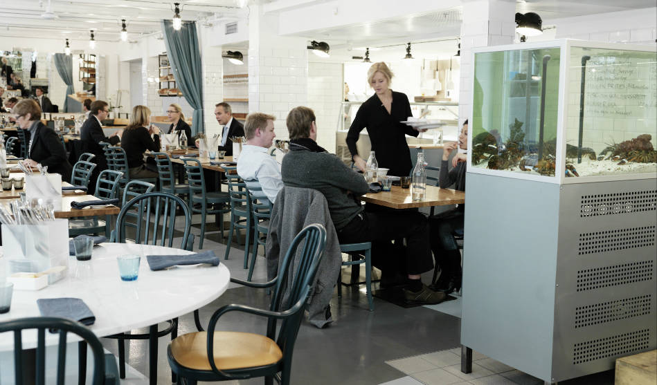 B.A.R. är skramligt och saluhallsaktigt med stort utbud av havslevande djur i olika storlekar och prisklasser. Här finns dessutom en ostron- och champagnebar med sympatisk personal som gärna visar hur ostronen ska öppnas. I fiskdisken får du chansen att peka ut exakt vilken fisk eller pilgrimsmussla du vill ha tillagad och sedan välja de tillbehör du tycker passar bäst på tallriken. Om du föredrar att laga maten själv går det fint att istället ta med sig kungsflundran eller räkorna hem. Och, jodå, det finns kött och grönsaker också.