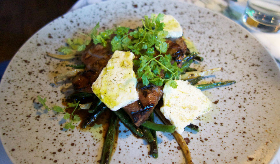 Typiska maträtter: Ankbröst med pärllök, vitlök, shiitake, cidersky och svampcanneloni. Torskrygg vin blanc med forellrom, bella verde, zucchini, kålrabi och sjökorall. Hamburgare på högrev med comté, majonnäs, fransk senap och brioche.