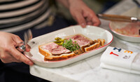 Typiska maträtter: Sotad råbiff Västerbotten ost, hasselnötter, syltad lök & dijonnaise. Carpaccio, Wagyu oxfilé från Snake River forms med Pearls by Kvicken, krämbakad äggula. Goofa mackor: Reuben, Oxbringa, surkål, Thousand island dressing & gruyére.