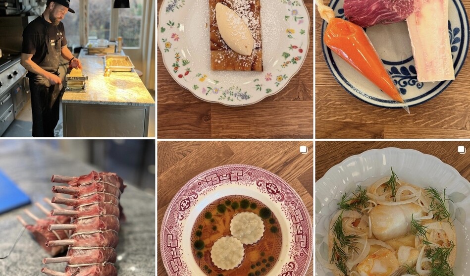 Typiska maträtter: Sauterad purjolök, ättiksgurka, stracciatella, tomatvinägrett – Sparris, beurre blanc, stenbitsrom – Råbiff, anklever, syrad lök, inlagd päron – Triangoli med svamp, gorgonzolasås, endive, hasselnötter – Svensk entrecôte, sky, tomat, torkade räkor – Havsabborre, bönor, sofrito, lardo, musslor.