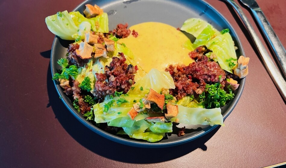 Typiska maträtter: Kroppkaka med Havgus 24, mangold, bakad lök och smörad nässelbuljong. Krämiga ärtor och bönor med rädisor och den Hvide Dame. Stekt gösrygg med rapsskott, ramslök, sandefjordsås och saltbakad potatis.