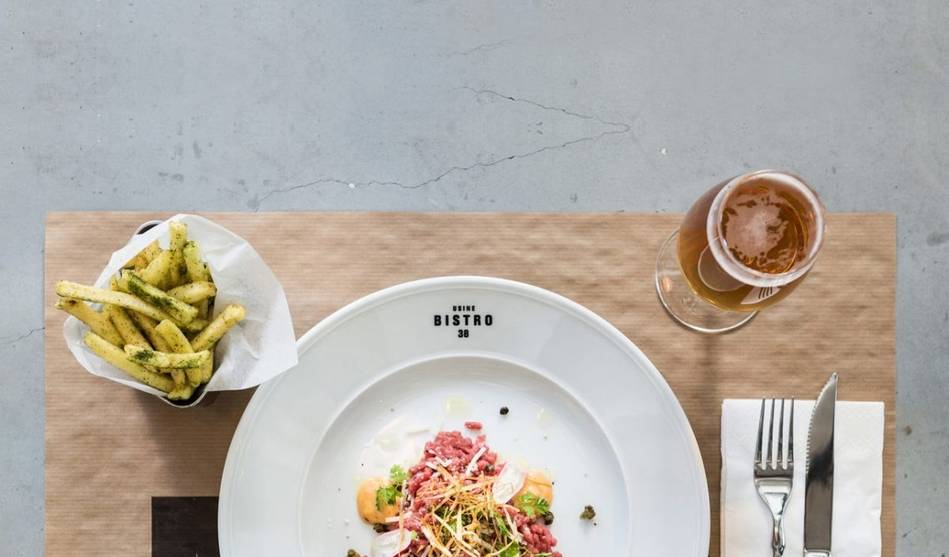 Usine betyder fabrik på franska, och nog ser det lite industriellt ut, det f.d. kontorskomplexet på Södermalmsallén som förvandlats till "superkrog" av erfarna duon Tim Karlsson och Michael Andreasson. I den multinationella bistron serveras klassiker med kontinental touche och i bakfickan Poche 36 vankas prisvärd lunch och tapas till kvällen. Den som har bråttom eller vill sommarluncha ute i Fatbursparken kan köpa take-out, och vid arbetsdagens slut inbjuder den skönt brutalistiska betongbaren till aw-häng.